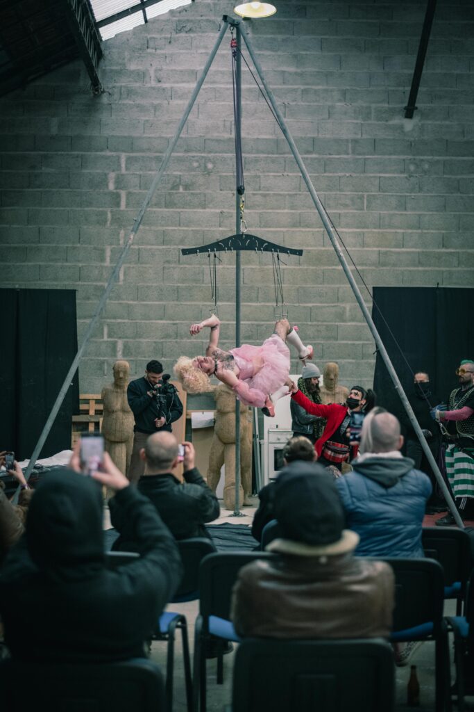 Lia Bagarre: It’s very similar to a freak show. We wanted to demystify the practice of hanging itself. At first, people can be a little shocked by the approach. Wearing makeup changes the relationship with the audience. We want to create a more festive, welcoming, and playful feel.