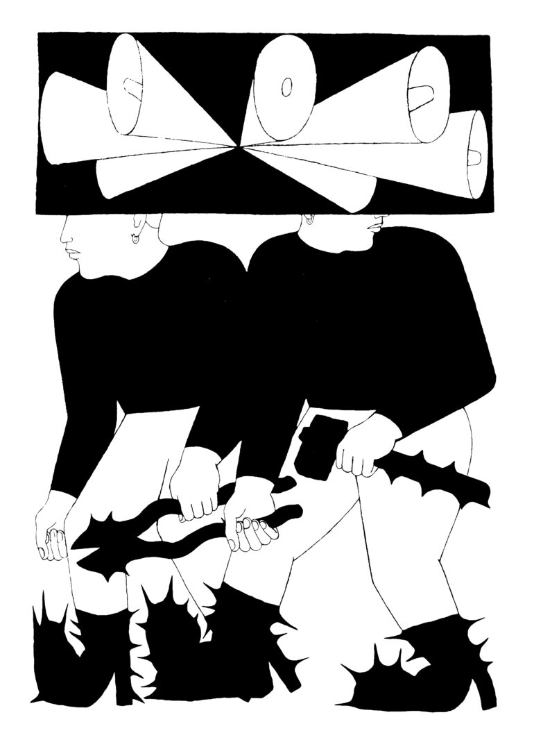 Initially, it was in the form of an “exquisite corpse” with shared sketchbooks. Gradually, we evolved this collaboration which now takes the form of a dialogue. These are our individualities which express themselves among themselves. At the beginning it was still in reaction with school.