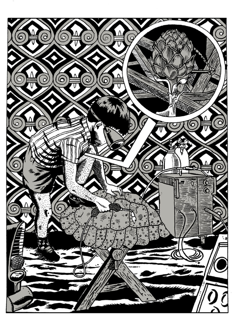 As a child when I was a good boy with grandmother, I had the right to have a Dragon Ball tome! I didn’t often go to my grandmother’s so I didn’t have many. I must have had a few disjointed volumes, so I was never able to follow the story but I watched them all the time because I thought they were so beautiful! Then a little later, at the media library, I came across comics by Matt Konture, Robert Crumb and Charles Burns.What a revelation! Ultra black and well-filled boxes, dark and trashy universes, it completely opened me up to all the underground comics.