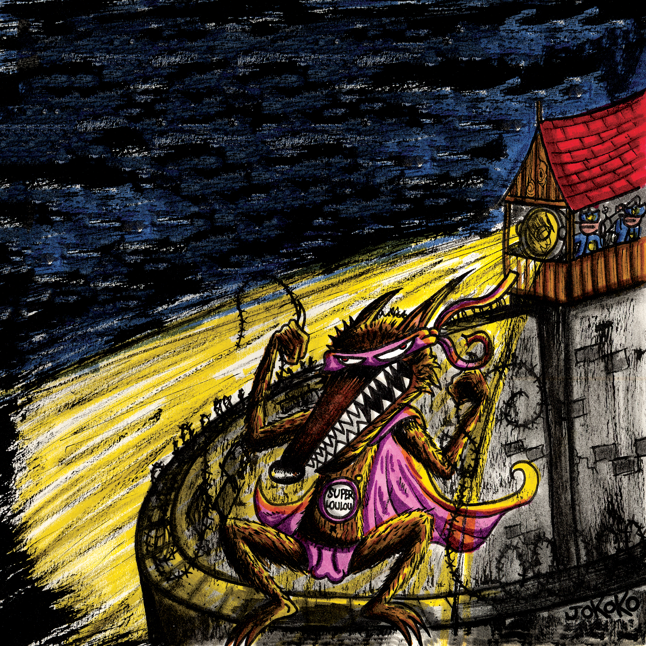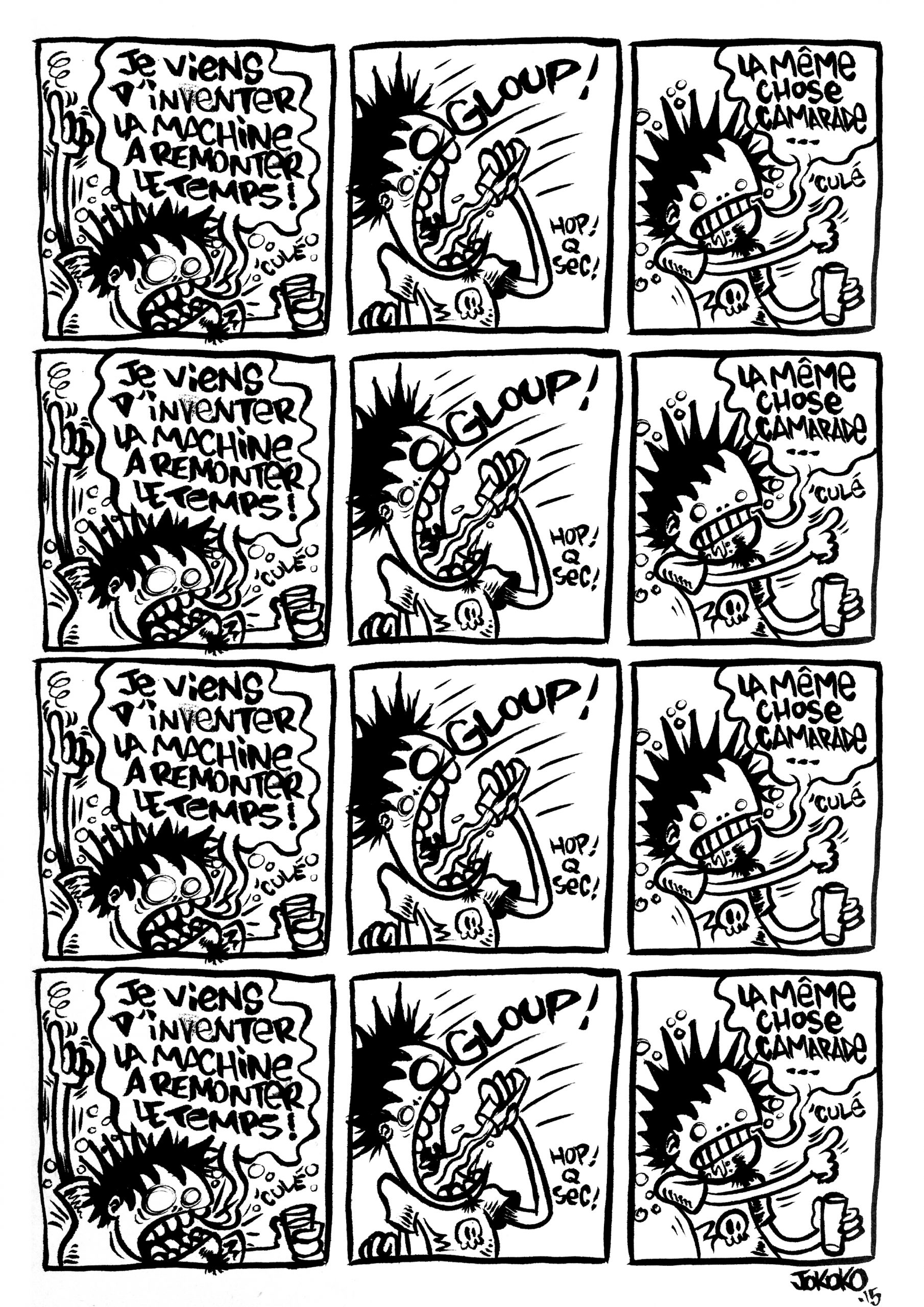 Beaucoup connaissent d’abord Jokoko pour ses performances dessinées en live avec Guerilla Poubelle ! Véritable fanatique de skate-punk depuis son enfance, l’illustrateur Montreuillois a été bercé au son de NOFX et de Pennywise. Cette culture graphique est omniprésente dans son trait, qu’il s’agisse de poster de concerts, de pochettes d’albums ou d’illustration pour son fanzine Kronik. Alors, mettez-vous un petit Punk in Drublic en fond sonore pour vous mettre dans l’ambiance ! | By Polka B.